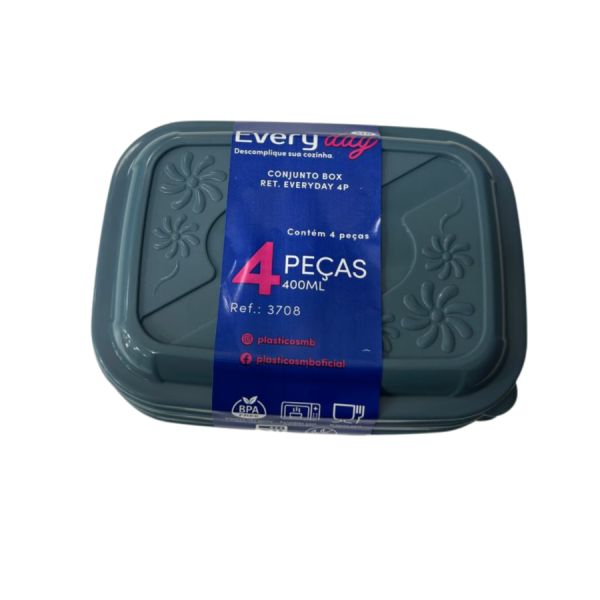 Conjunto de Potes Plásticos MB Retangulares Everyday 400ml 4 Peças
