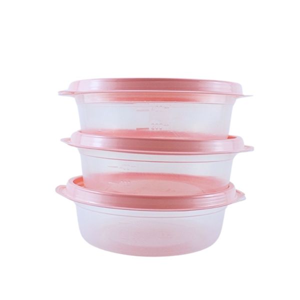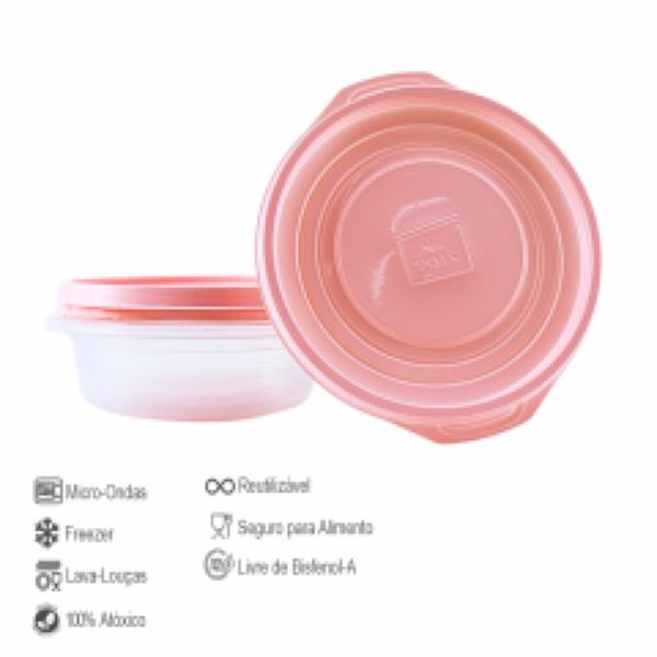 Kit Pote de Plástico Multiuso Mr. Pots Redondo 600ml Clear Rosa Pastel 3 UN