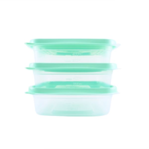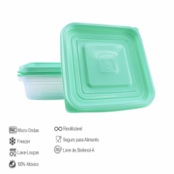 Kit Pote de Plástico Mr. Pots Multiuso Quadrado 700ml Clear Verde Pastel 3 UN