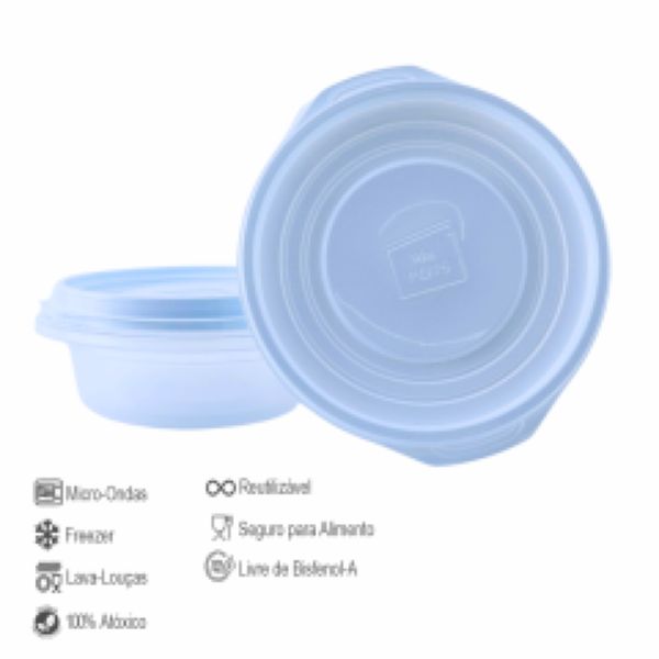 Kit Pote de Plástico Multiuso Mr. Pots Redondo 600ml Clear Azul Pastel 3 UN
