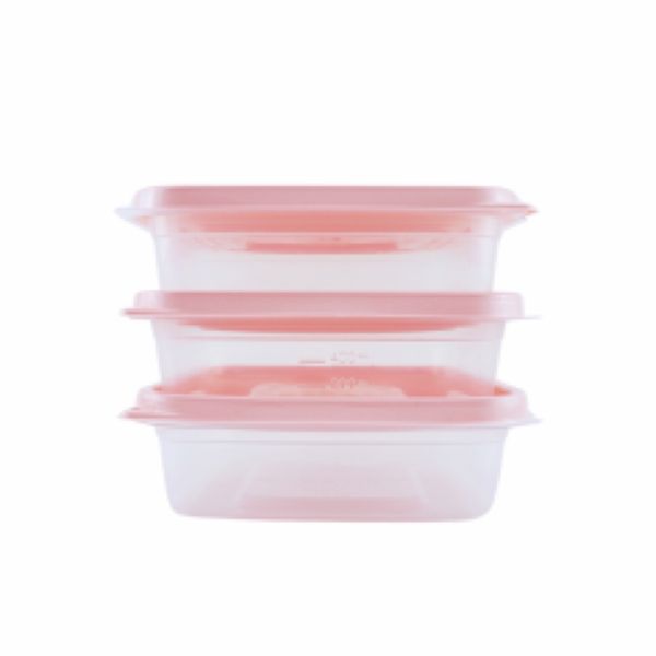 Kit Pote Plástico Mr. Pots Multiuso Quadrado 700ml Clear Rosa Pastel 3 UN