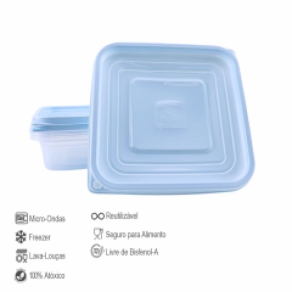Kit Pote Plástico Mr. Pots Multiuso Quadrado 700ml Clear Azul Pastel 3 UN