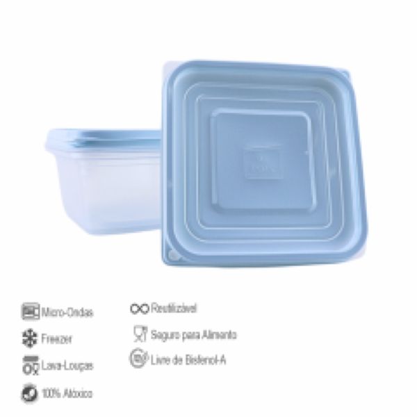 Pote Plástico Multiuso Mr. Pots Quadrado 1300ml Clear Azul Pastel Kit 3 UN