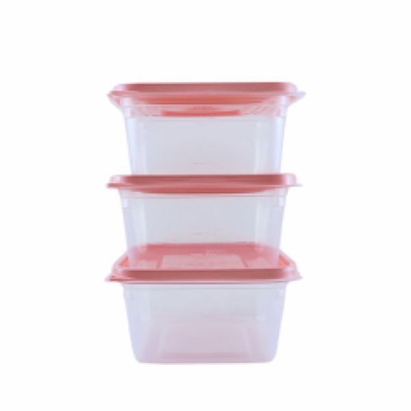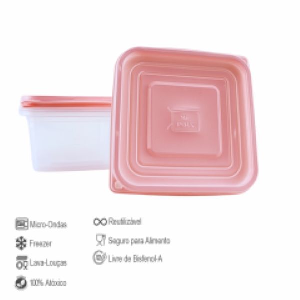 Pote Plástico Multiuso Mr. Pots Quadrado 1300ml Clear Rosa Pastel Kit 3 UN