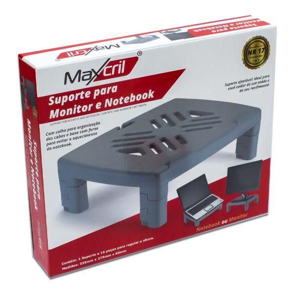 Suporte de Mesa Maxcril para Monitor e Notebook Preto 832 1 UN