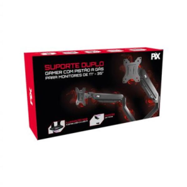 Suporte para 2 Monitores Pix Pistao a Gas 17" a 35" PX-GG9-D Preto 1 UN
