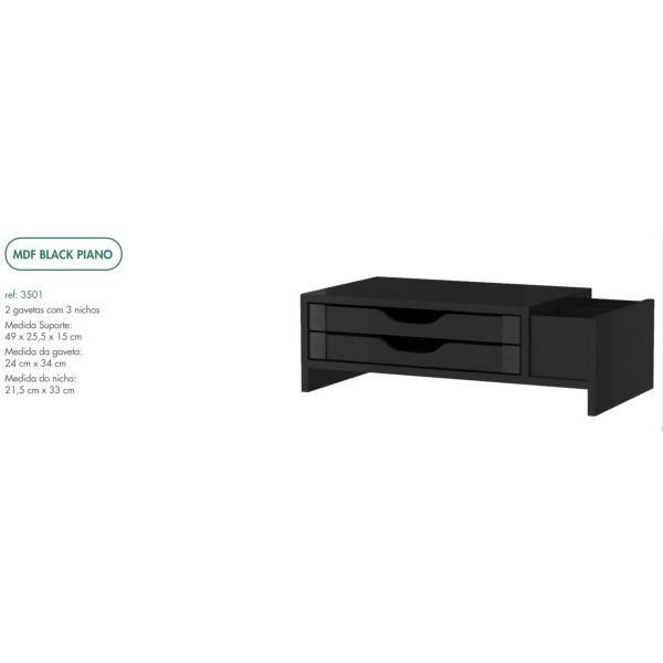 Suporte para Monitor Souza 2 Gavetas 3 Nichos em MDF Preto 1 UN