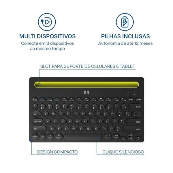 Teclado sem Fio Slot Bluetooth Preto TC284 1 UN Multilaser