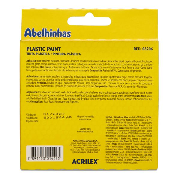 Tinta Plástica Acrilex 20ml 6 Cores 1 UN